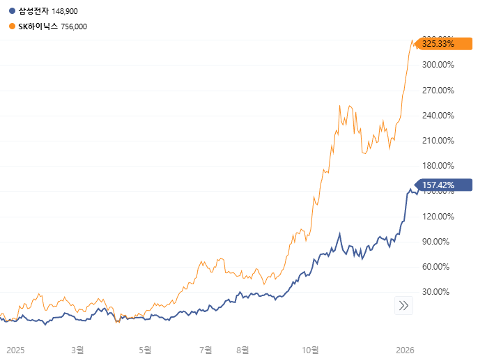 SK하이닉스는 HBM(고대역폭 메모리) 시장의 압도적 선점자로, 저는 사팔(매도와 매수를 반복)을 했음에도 불구하고 저에게 큰 수익을 안겨주었습니다. 하지만 특정 종목의 비중이 과도하게 높아지면 개별 종목의 변동성이 계좌 전체의 리스크가 됩니다.
